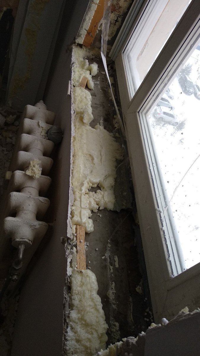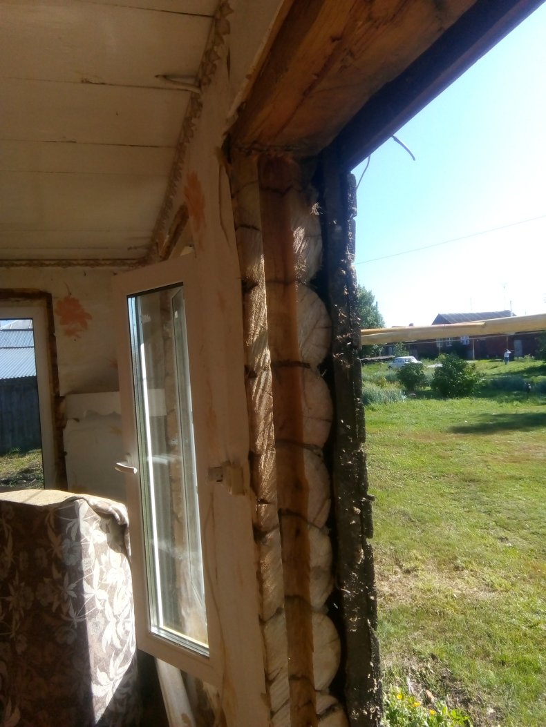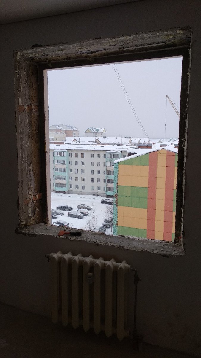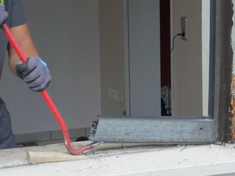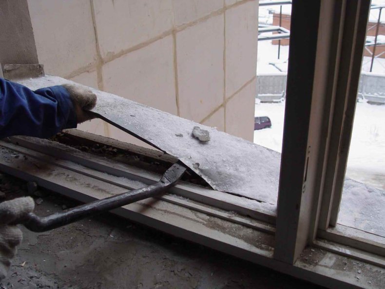 Первым делом убирается старая, оконная конструкция. Вначале снимаются створки, затем отрезается в одном месте короб и с усилиями вытягивается вся конструкция.