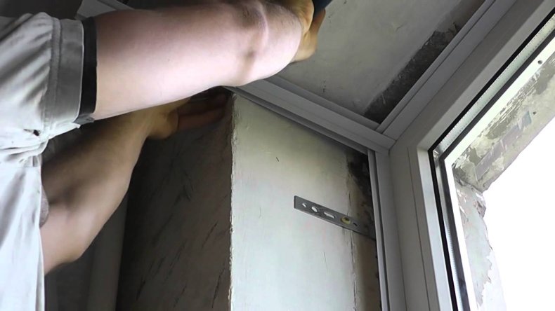 - Через отверстия в раме чертится разметка в оконном проёме. Не стоит это делать по линейке, ведь отверстия не совпадут.