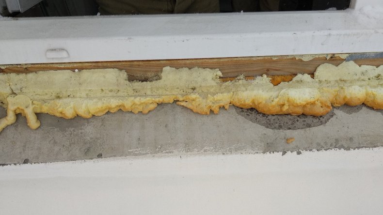 - В промежуток меж рамой и стеной заполняется пена для формирования тепловой изоляции. Потом щель закрывается компенсирующей лентой.
