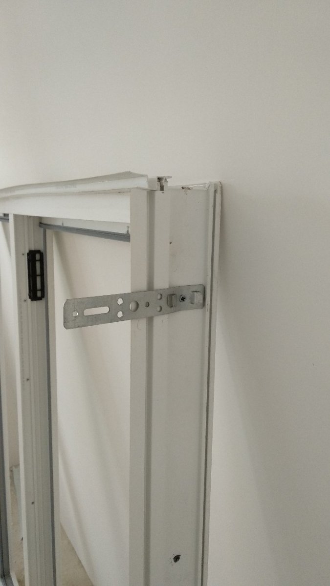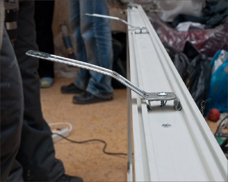 - Крепление вставляется через раму и закручивается. Верх детали позже будет скрыт стеклопакетом или закрытой створкой.