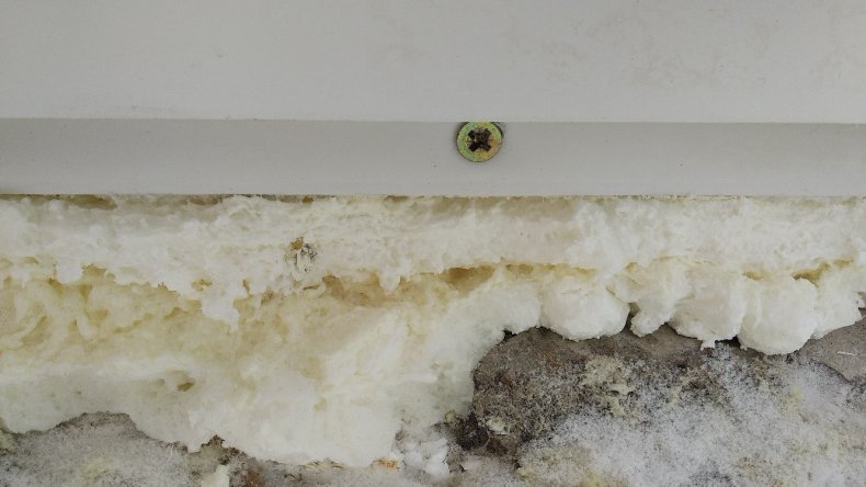 При ведении работ в зимний период – снег и скопившийся лёд убираются, а торцы высушиваются строительным феном.