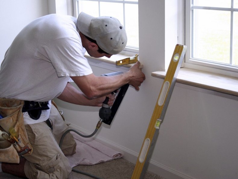 - Монтируется подоконник, и окончательно отделываются проёмы. На уличную часть окна устанавливается отлив.