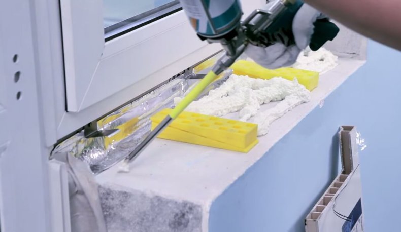 Потребуется также строительная пена. Она служит утеплителем и позволяет закупорить щели. Ещё понадобится лента для гидроизоляции.
