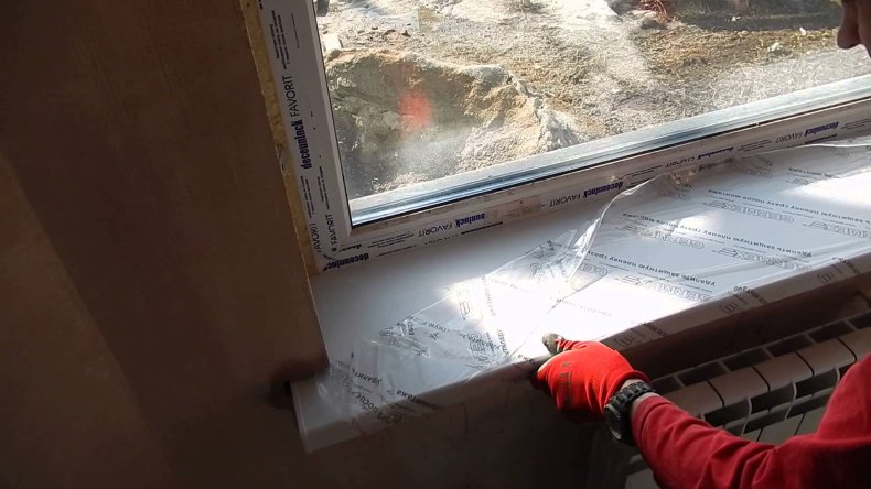 После полного высыхания монтажную пену под подоконником срезают вровень со стеной, проводится шпаклевание. Законцовки пластикового подоконника оснащаются заглушками, которые садятся на герметик.