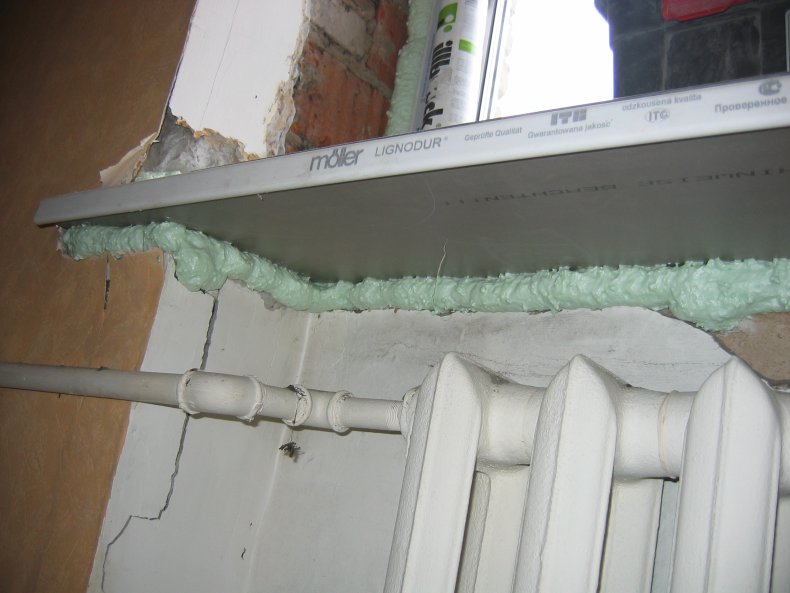 Этап 4. Фиксация подоконника при помощи монтажной пены