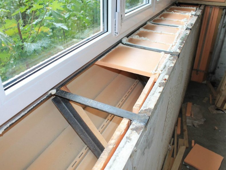 Для укрепления длинного подоконника ставятся металлические уголки.