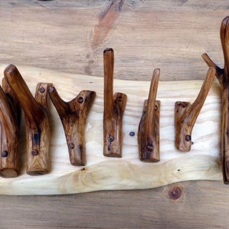 - После этого вам нужно будет прикрепить крючки из веток к древесному основанию при помощи саморезов, вкрученных с тыльной стороны основания.