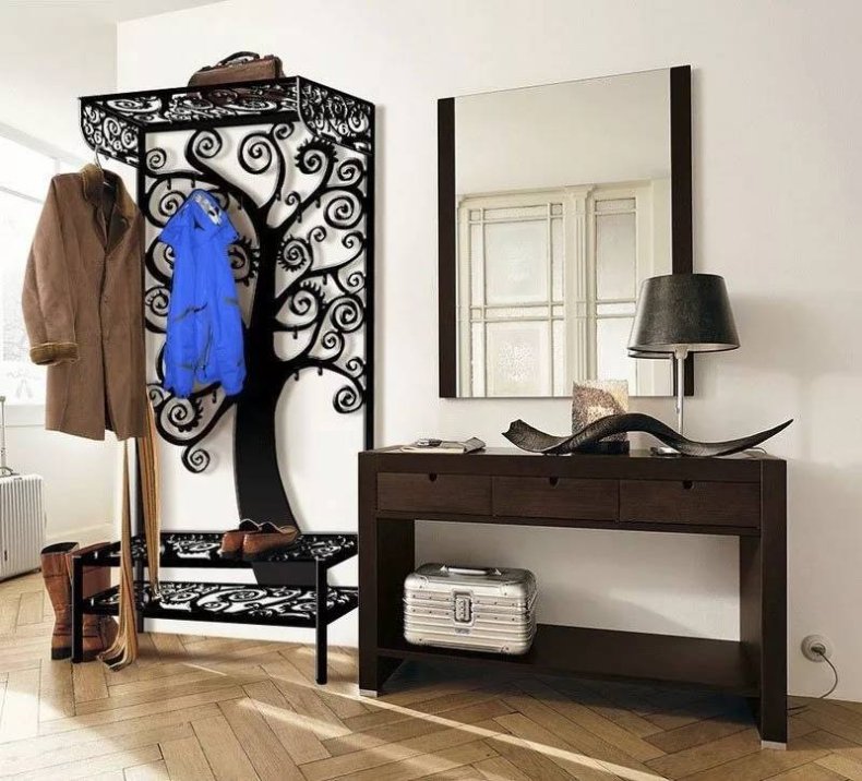 Вешалки бывают самые разные: большие и маленькие, деревянные и металлические, с зеркалом и без. Если у вас есть такая потребность, вам нужно понять ее. Обычно настенные вешалки находятся прямо напротив двери.