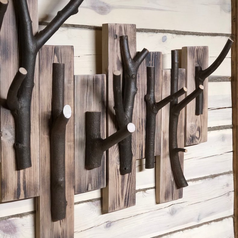 Вы можете самостоятельно изготовить вешалку из дерева.
