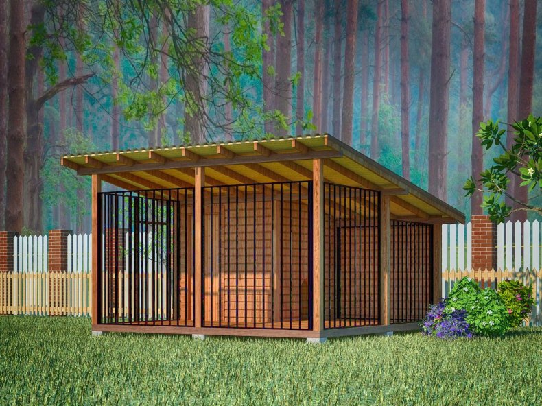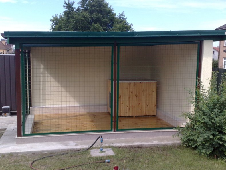 Вольер относится к огороженной конструкции. Которая может быть, как крытой, так и открытой. Подходит для содержания не только кошек и собак, но и пернатых.
