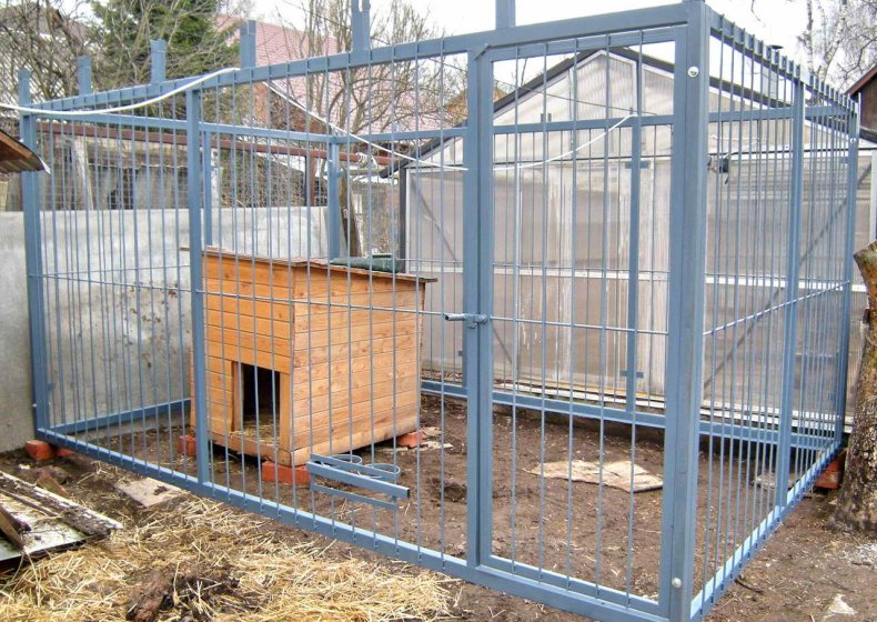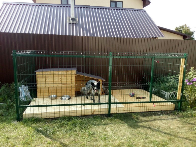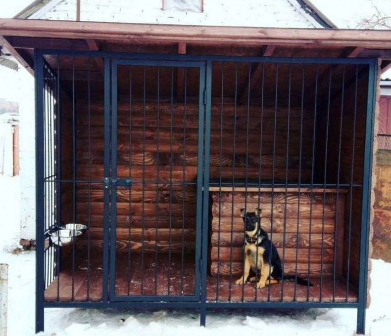 Также собака может пораниться об элементы сварки. Поэтому перед использованием этого варианта, стоит много раз подумать прежде чем сделать такой вольер. Ведь безопасность любимого четвероного друга должна быть превыше всего.