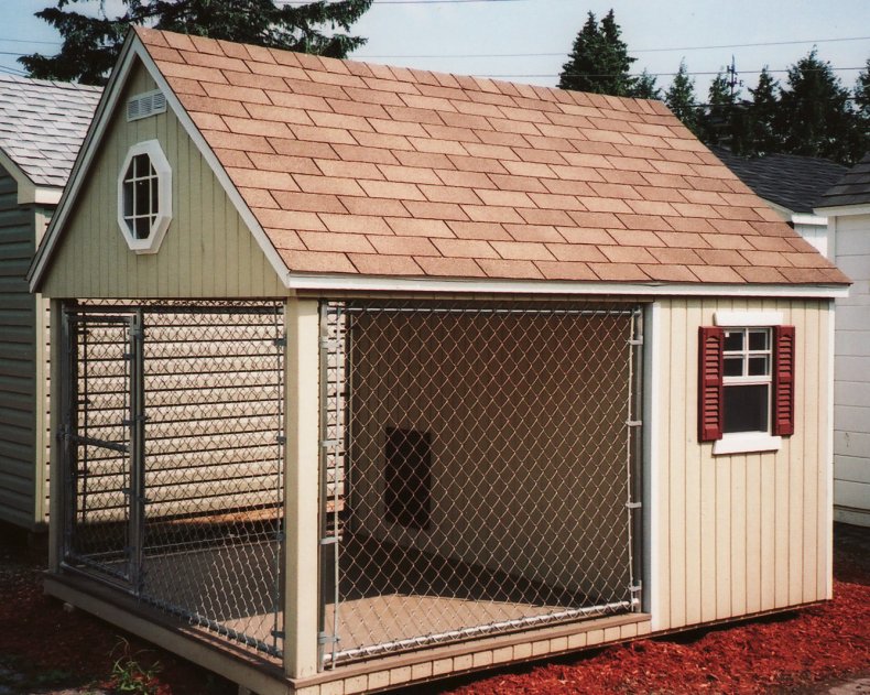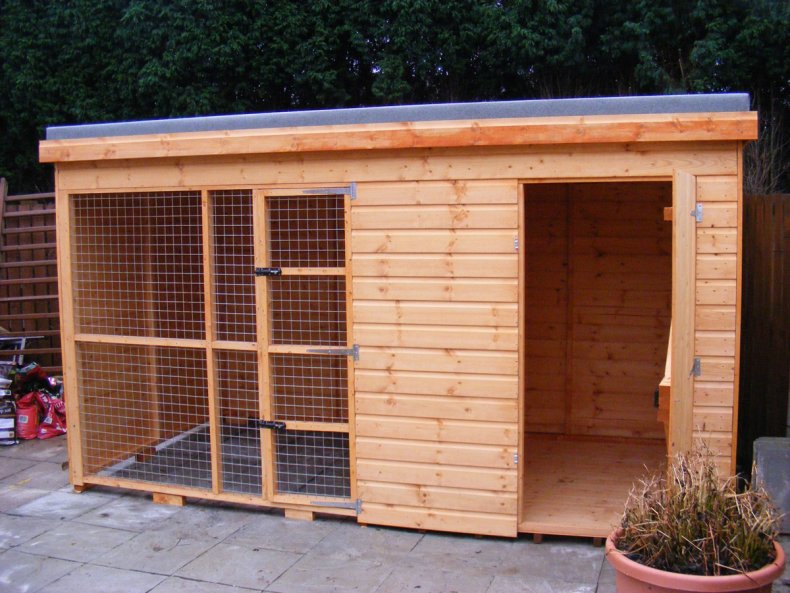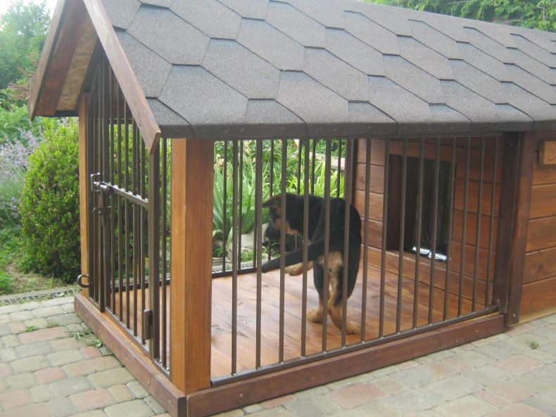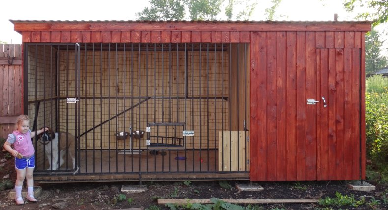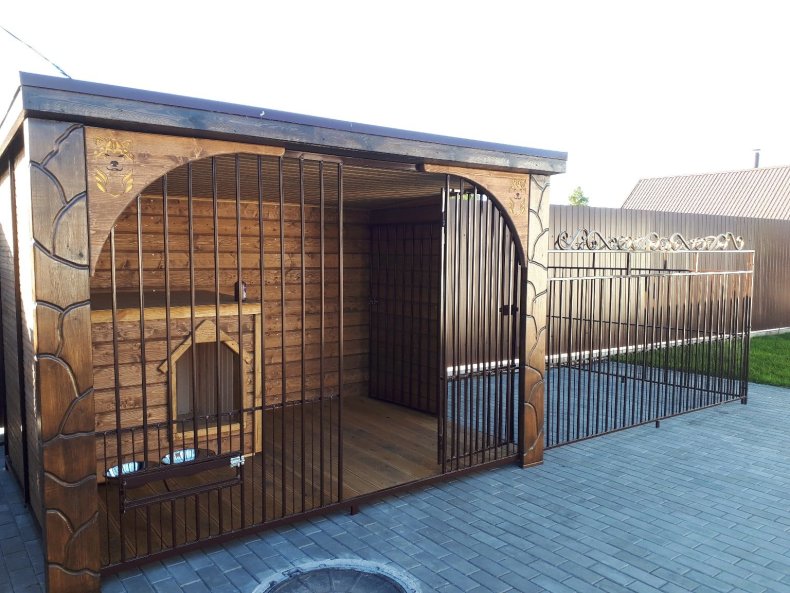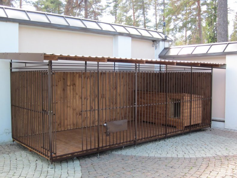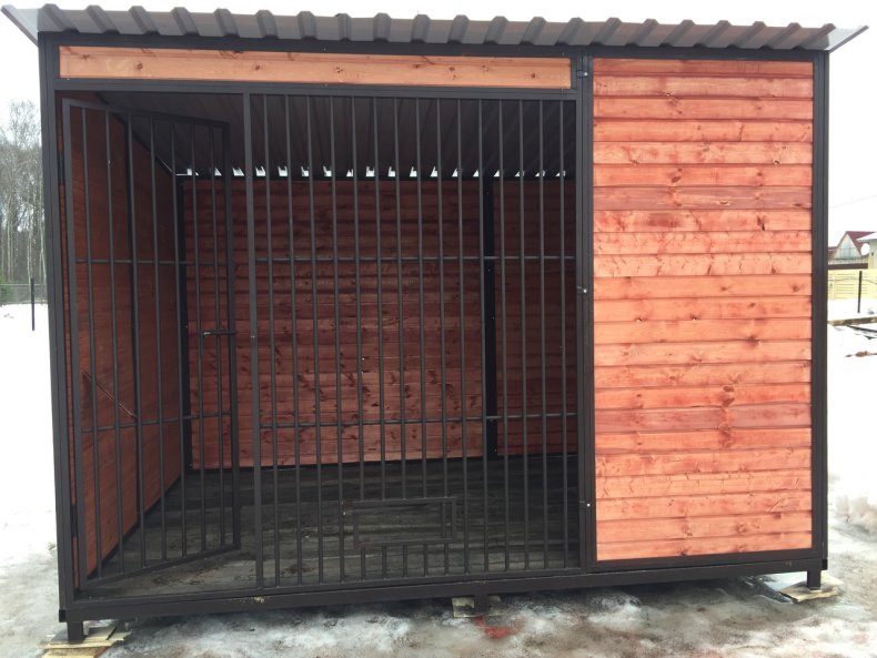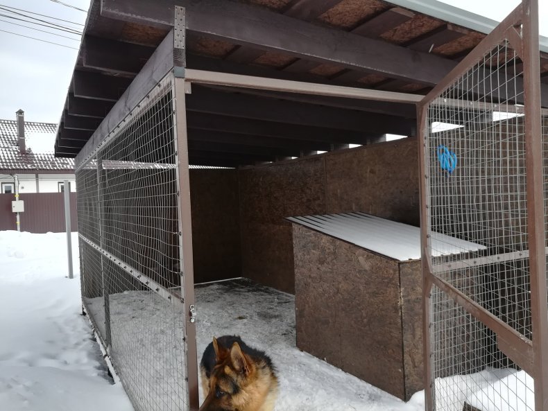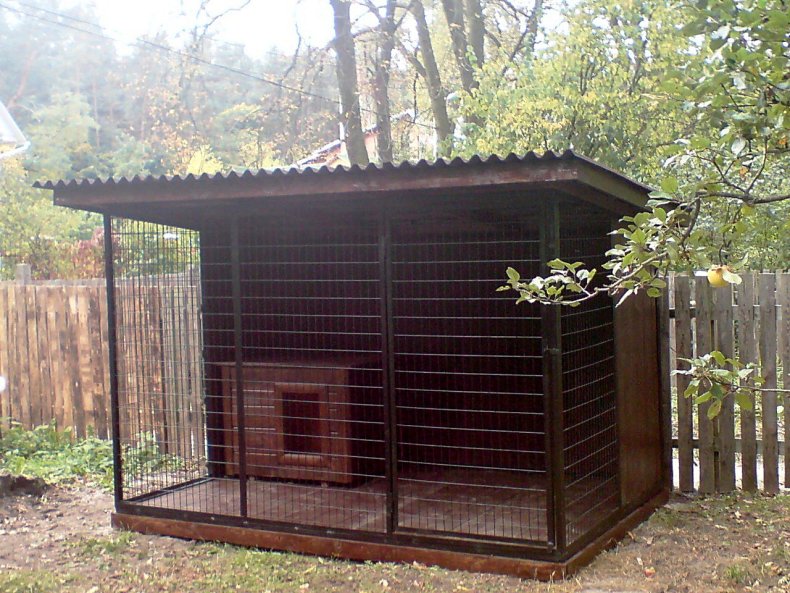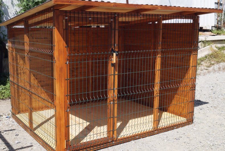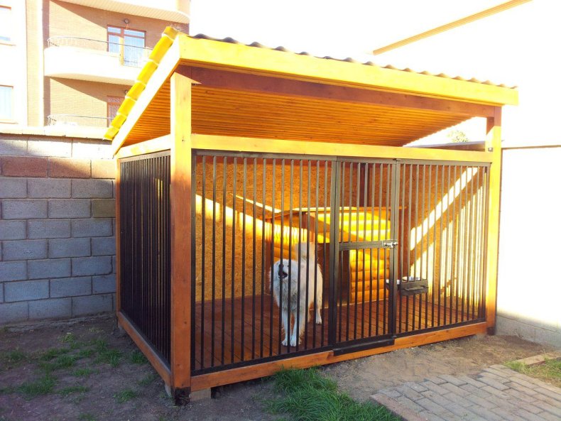 - Между крытым и открытым вольером, лучше выбрать первый вариант. Это поможет избежать ряда проблем – питомец не сбежит и к нему никто не заглянет в гости.