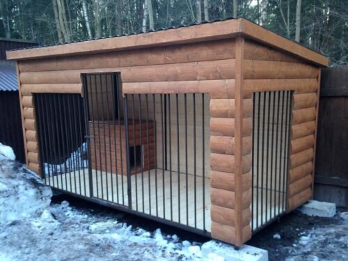 Также стоит подумать об утеплении вольера, а именно будки, где будет зимовать питомец. Конечно можно сделать зимник, но это не совсем удобно, так как собаке придется постоянно выбегать из него, чтобы исследовать обстановку.