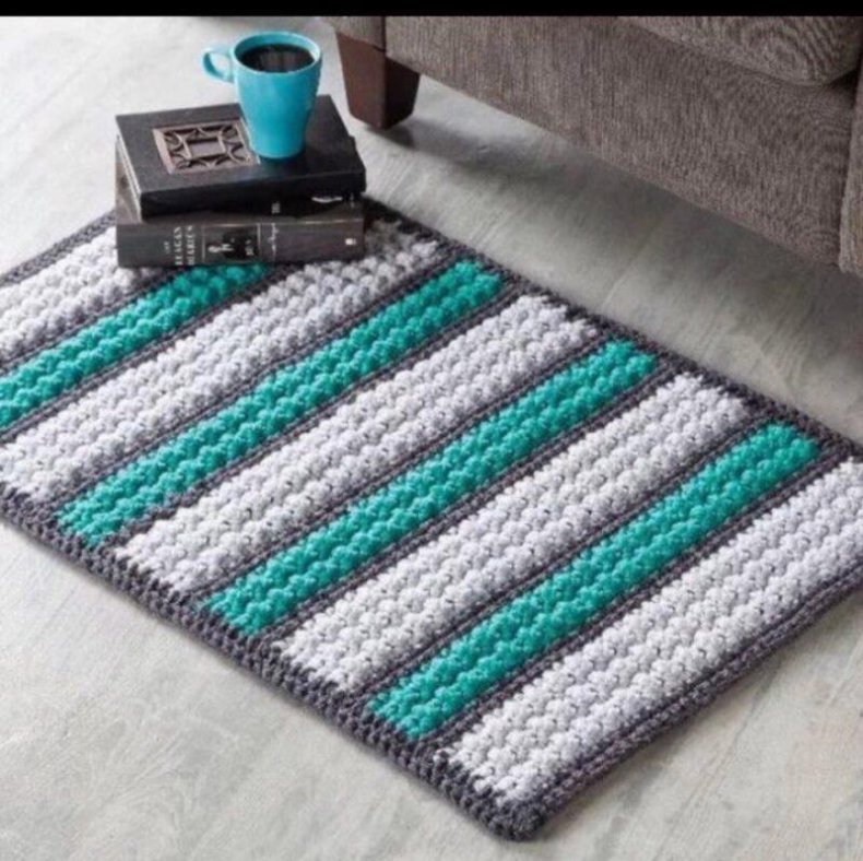 Коврик подойдет для гостиных комнат и прихожих. Вяжется достаточно просто.