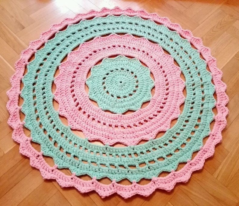И все это благодаря ажурной кромке, которой отделывают края коврика.
