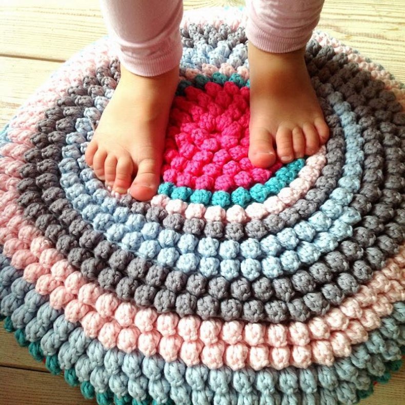 - Так как дети больше всего времени, в период игр, проводят на полу. Здесь отлично подойдет натуральная пряжа.