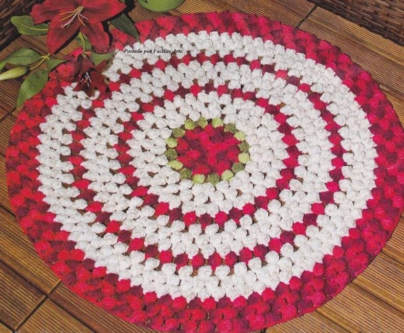 Но, именно изделия с узелками относятся к началу данного рукоделия, применяемого в основном в деревне. Такие коврики накидывают на стулья или подстилают к кровати, или рядом с входной дверью.