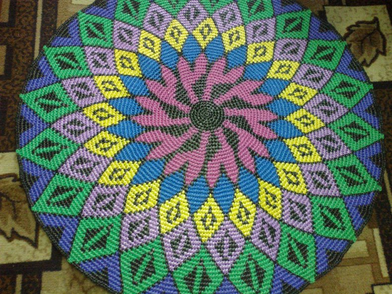 Также для изготовления ковриков используется полиэфирный шнур. Он придает изделию эластичность, которая способствует противостоянию пыли. Чаще всего из такого материала изготавливаются круглые или же квадратные коврики.