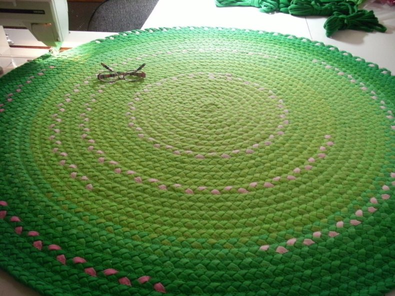 - И на создание такого коврика уйдет меньше времени, нежели работать с натуральной нитью.