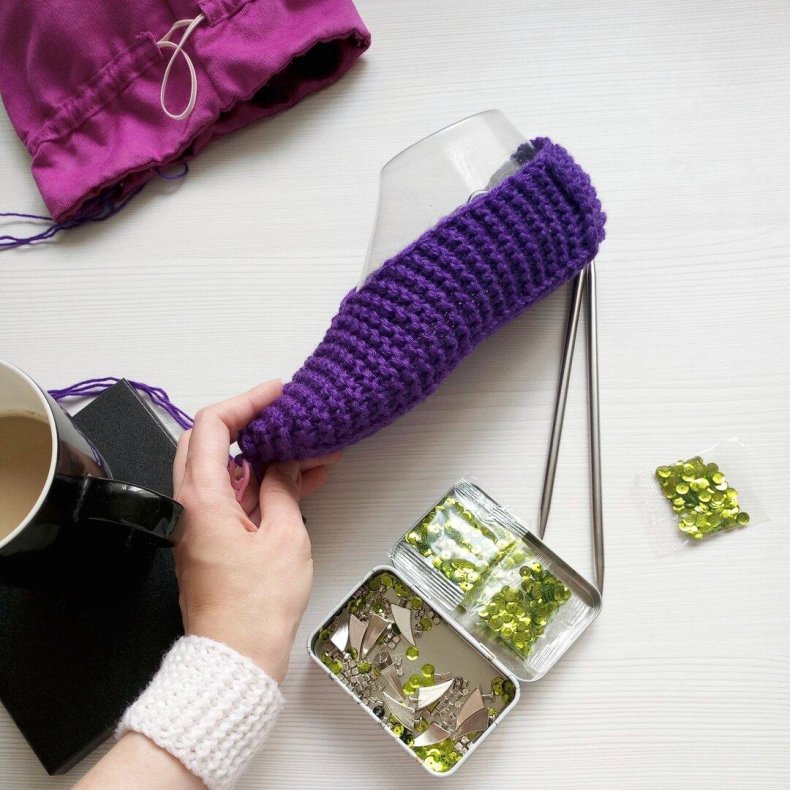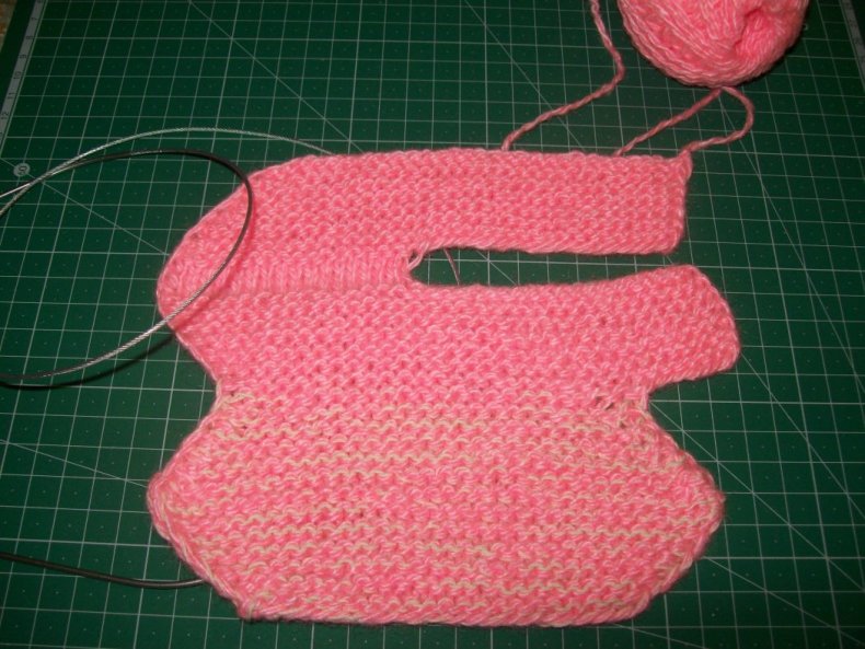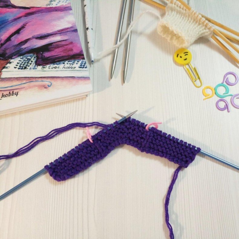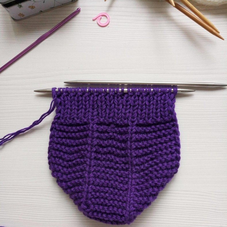 - Изделие перевернуть и вязать в обратную сторону до маркера.