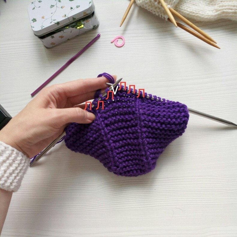 - Во втором изнаночном ряду прибавок, прибавки создавать не требуется.
