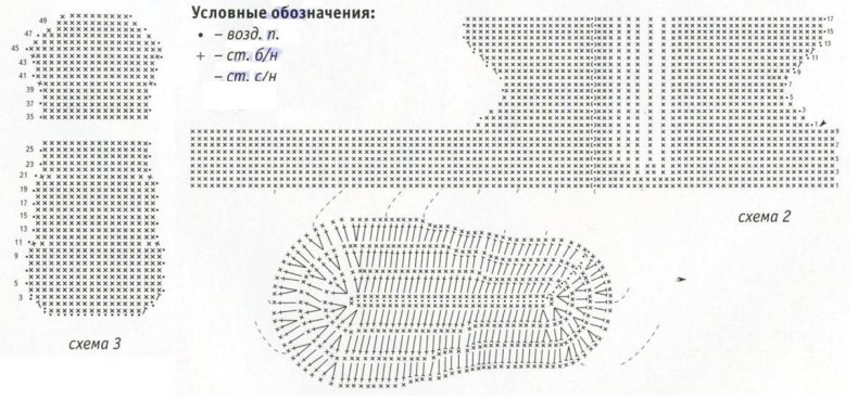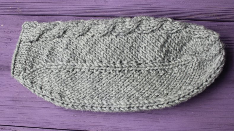 Подошва состоит из двенадцати петель. Первая кромочная петля провязывается лицевой и вместе с кромочной важно проплести 39 петель.