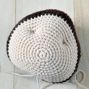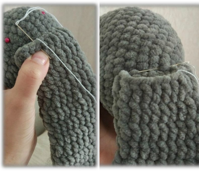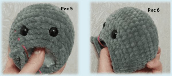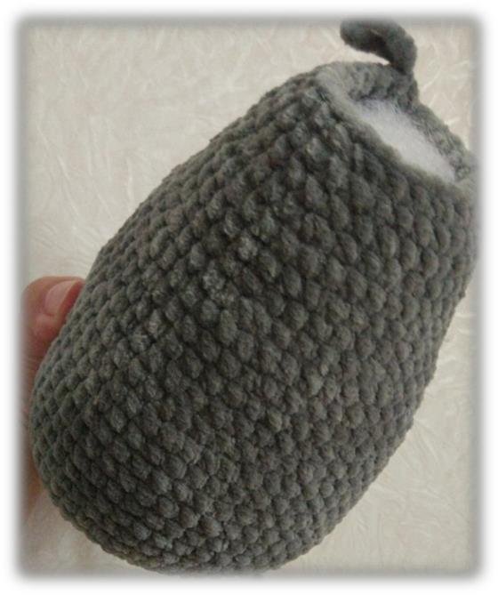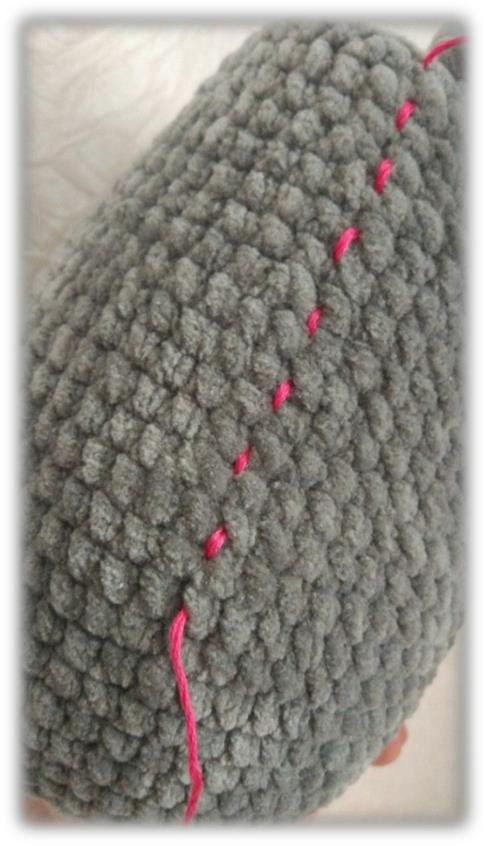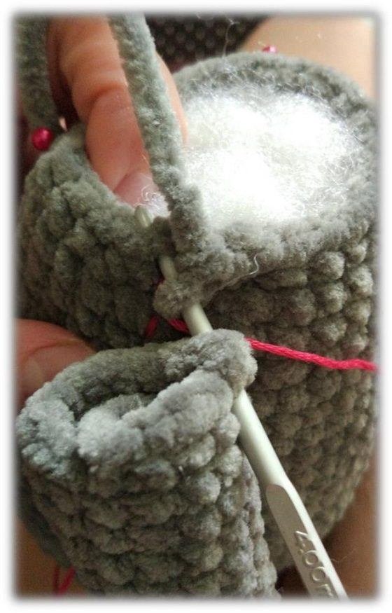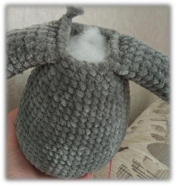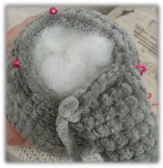 - Не стоит забывать, про наполнение игрушки, поэтому перед тем, как объединить детали вместе нужно заполнить пустоту.