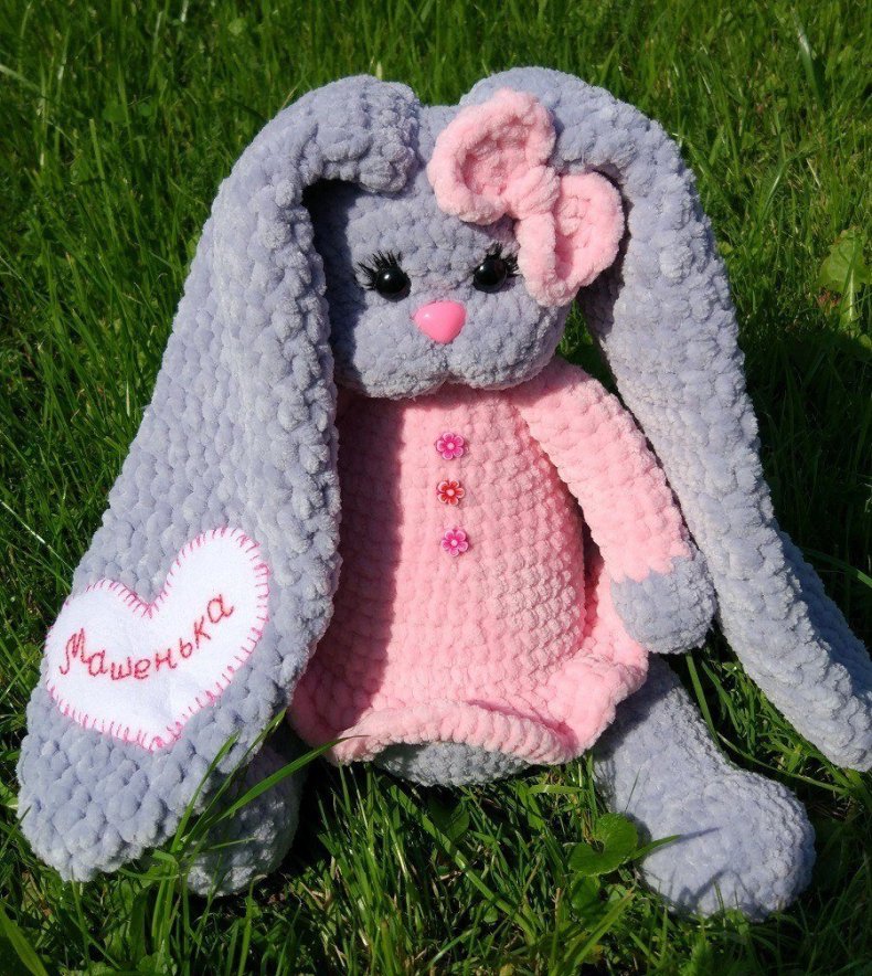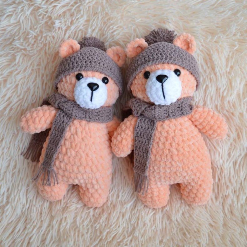 - Велюр или плюш тоже неплохой вариант для новичков в вязании. Чаще всего этот материал используют для изготовления больших игрушек.