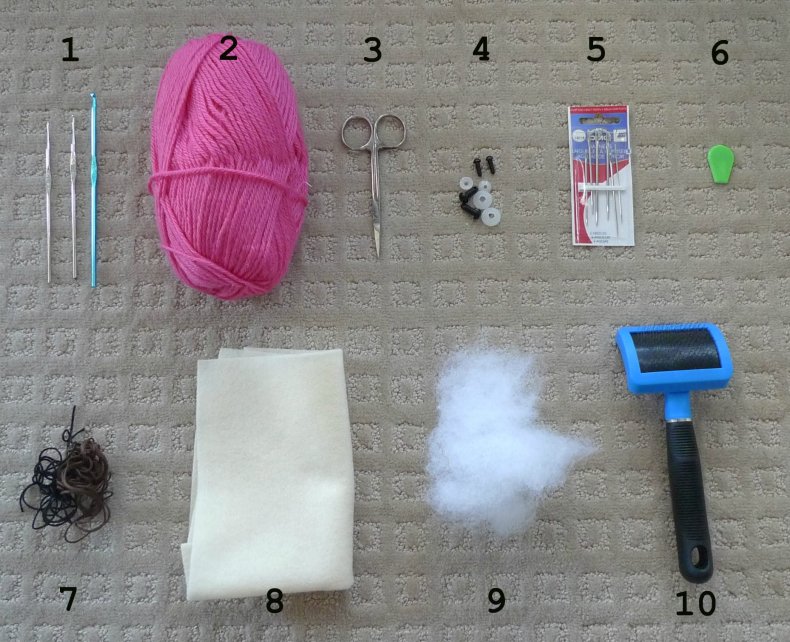 - Первое используют непосредственно для вязания игрушки и выбор инструмента снова будет зависеть от размеров будущего продукта.
