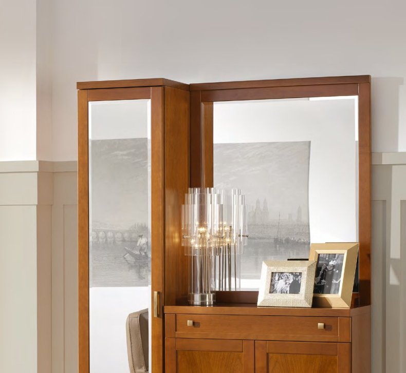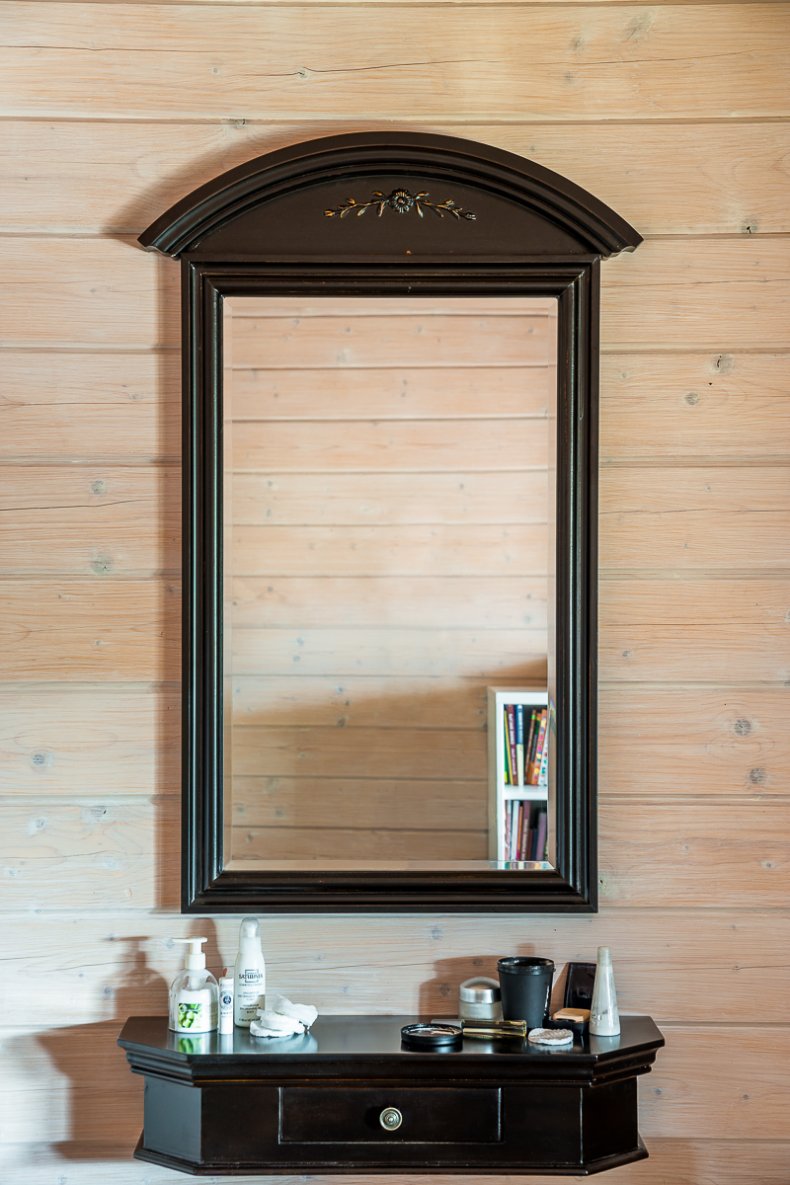 Зеркало дополняет мебель, если оно располагается на дверце шкафчика, тем самым становится ее частью и дополнением. Это функционально и удобно, ведь зеркало экономит место.