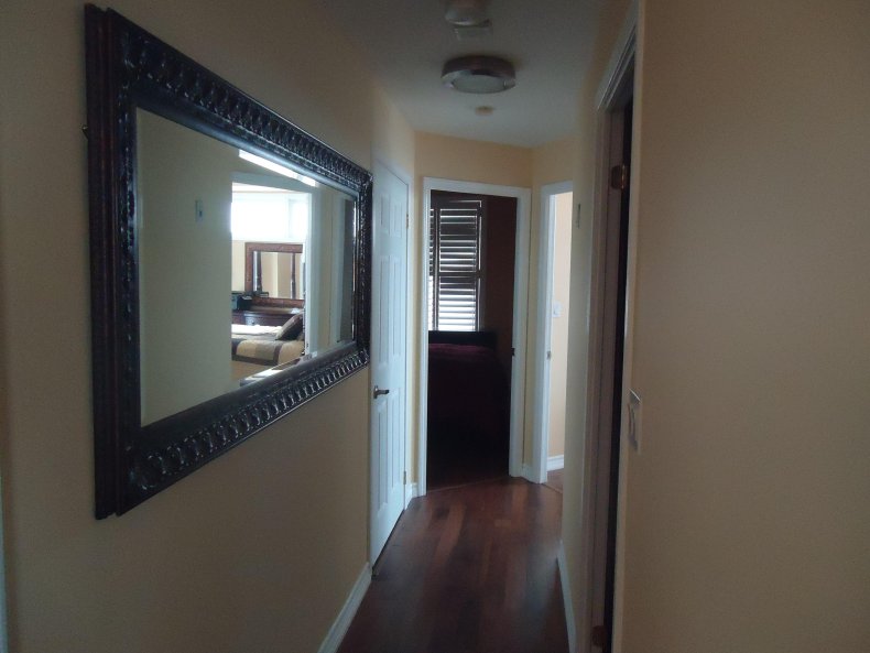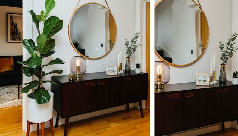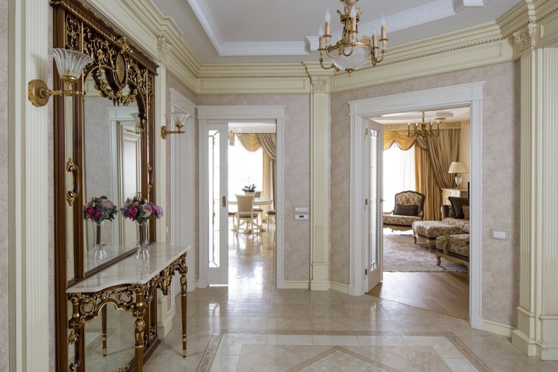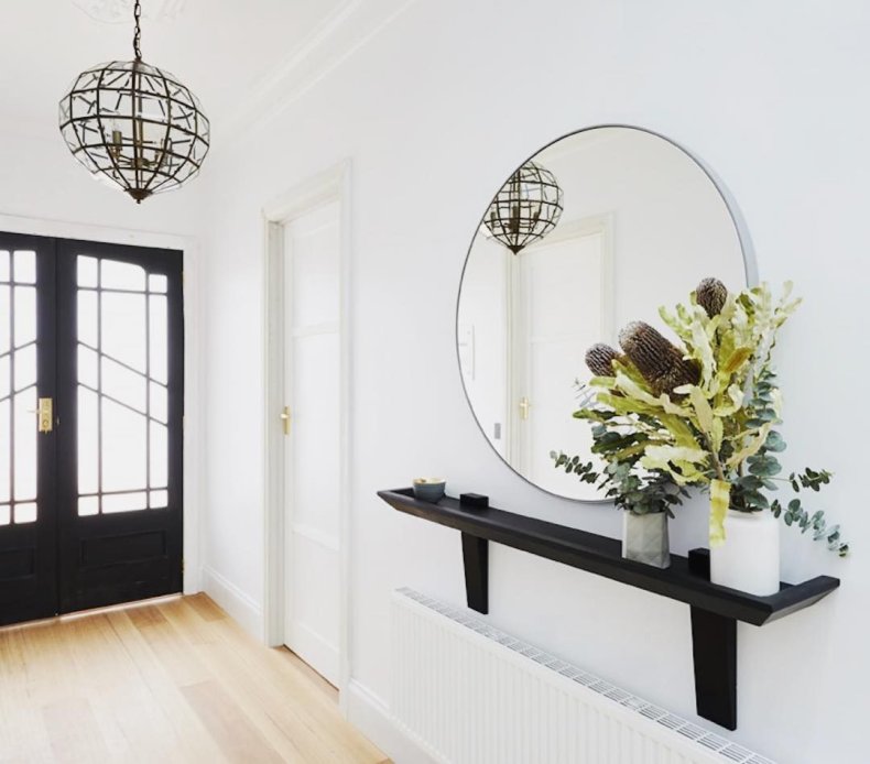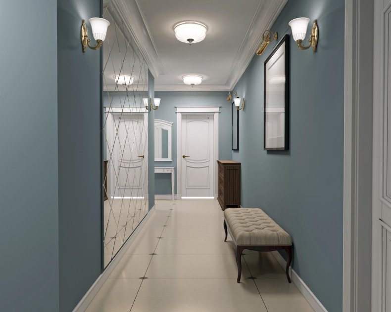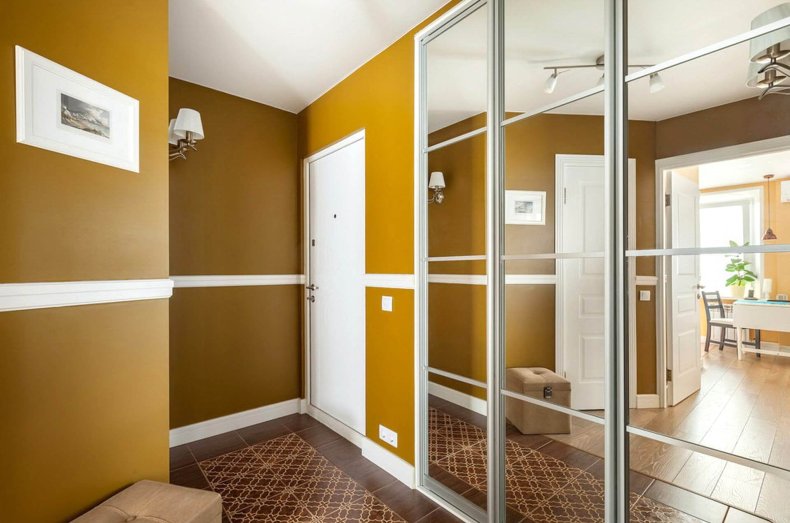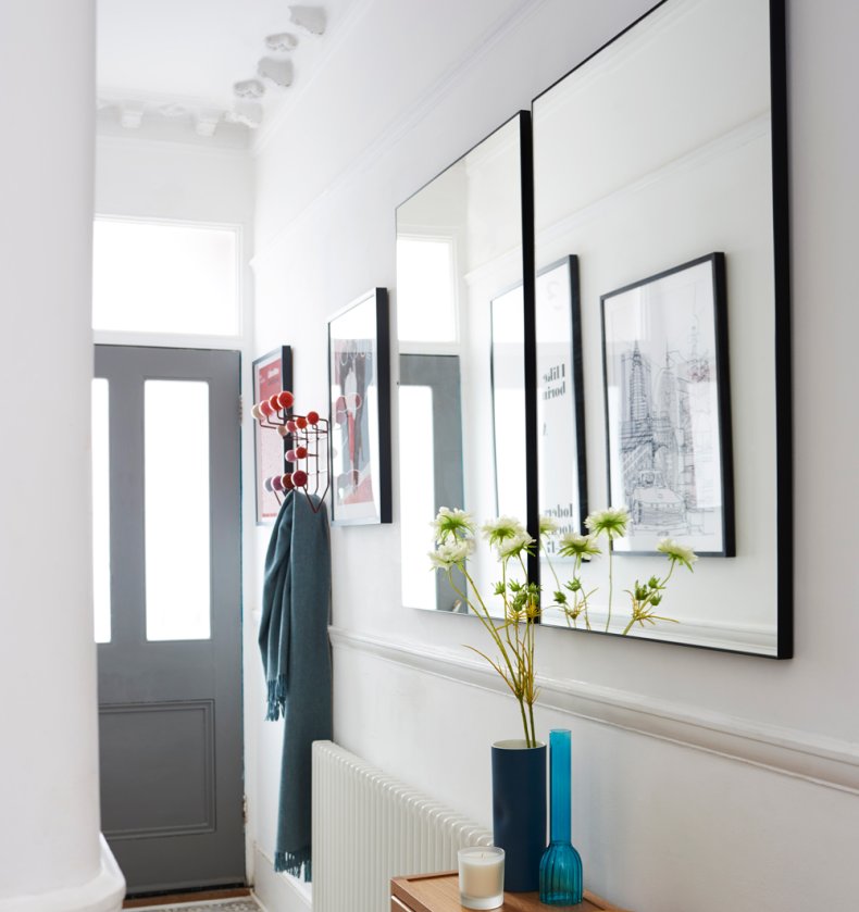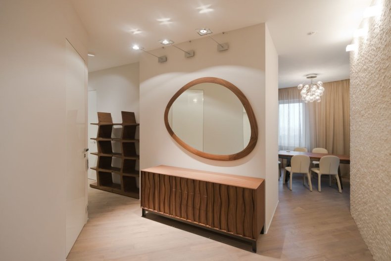 - А вот в маленьких прихожих как раз наоборот, рекомендуют ставить зеркало таким образом, чтобы избегать столкновения со стеной.
