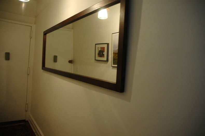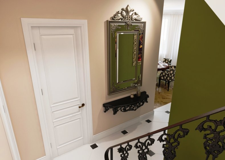 - При этом, напротив самой двери, его располагать не следует, потому что каждый раз открывая дверь, видно собственное отражение, что может надоесть в скором времени.
