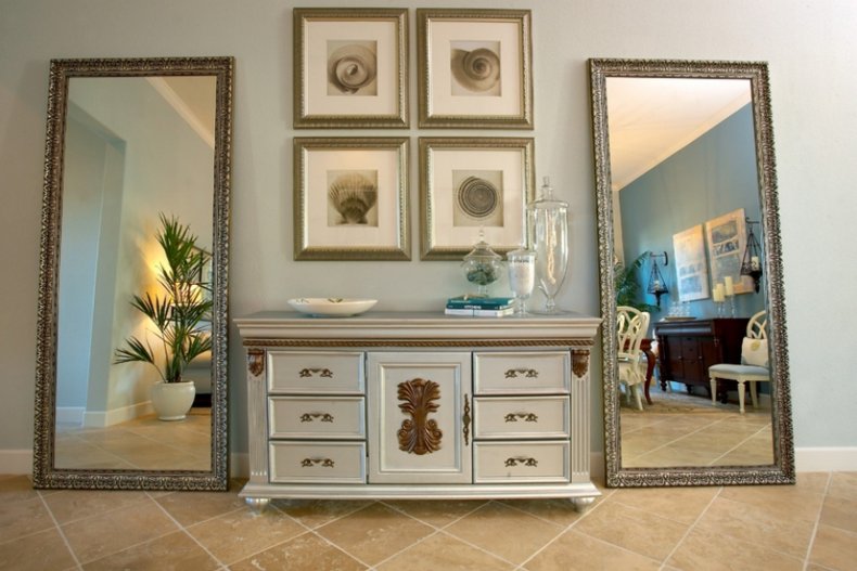 - Лучше располагать зеркало на той стене, которая противоположна входной двери.