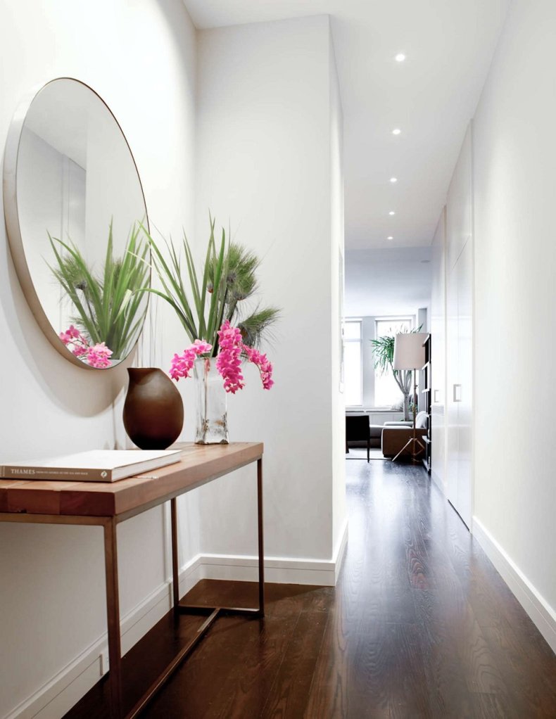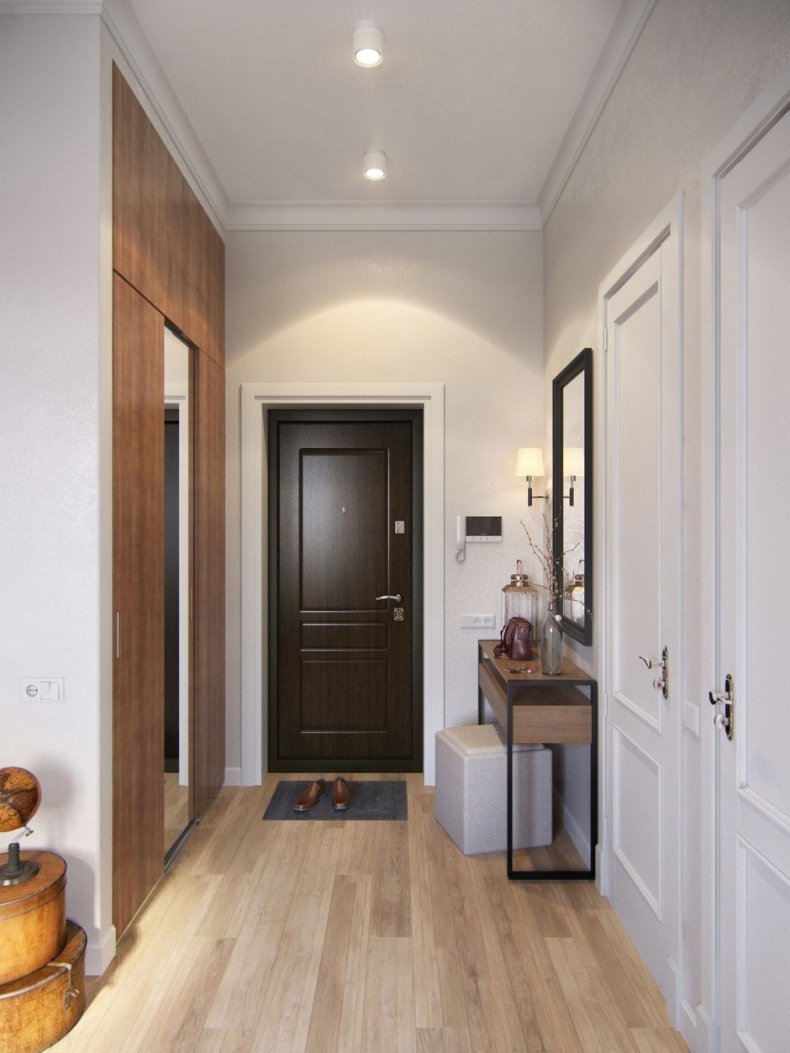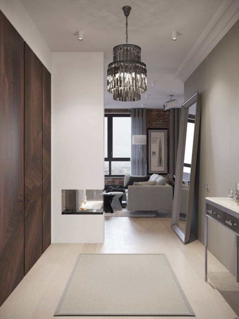 Из-за того, что в прихожей нет окон, необходимо сделать так, чтобы освещение зеркала было достаточно, что позволит целиком рассмотреть свое отражение. В прихожей будет недостаточно только основного освещения, важно еще установить его отдельно для зеркала.