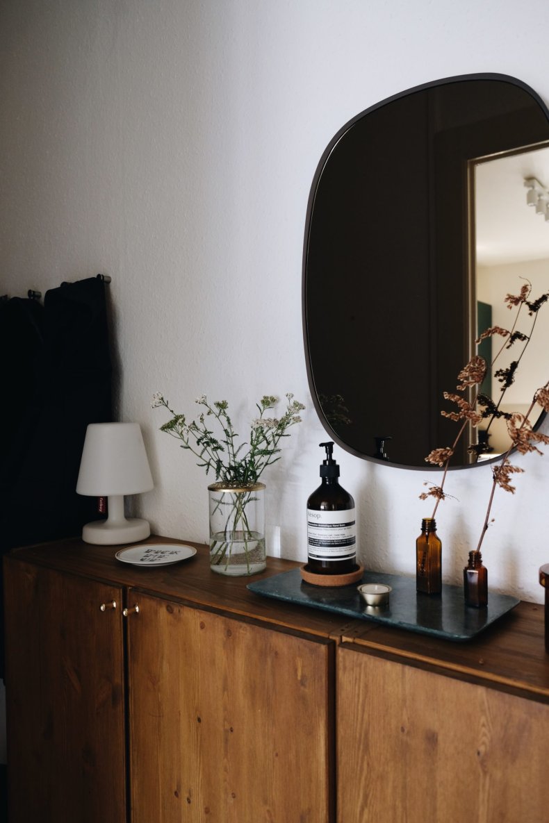 Не важно, какого размера ваше зеркало и какой формы, нужно поставить его так, чтобы еще оставалось место в прихожей. Нам необходимо иметь свободное пространство, чтобы без проблем одеться и без помех рассмотреть свой наряд, выходя на улицу.