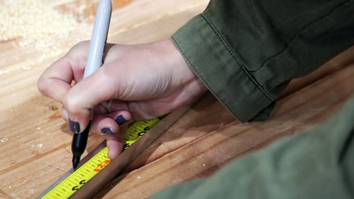 - Выровняйте все досочки. Измерьте расстояния от первой, до последней рейки и используйте десятисантиметровые доски как перемычки.