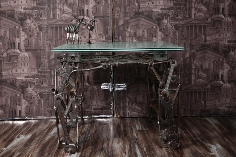 Как правило, металл – идеальный материал для опоры либо каркаса. Нечасто можно встретить металлическую столешницу. В домашних условиях изготовить что-либо из металла достаточно сложно, необходимо специальное оборудование.