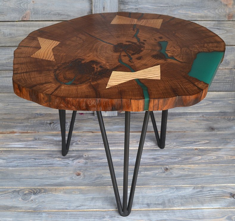 - Неповторимый дизайн столика. Такой вы не встретите нигде. Можно создавать мебель самых причудливых форм, главное, чтобы она гармонично вписывалась в интерьер.